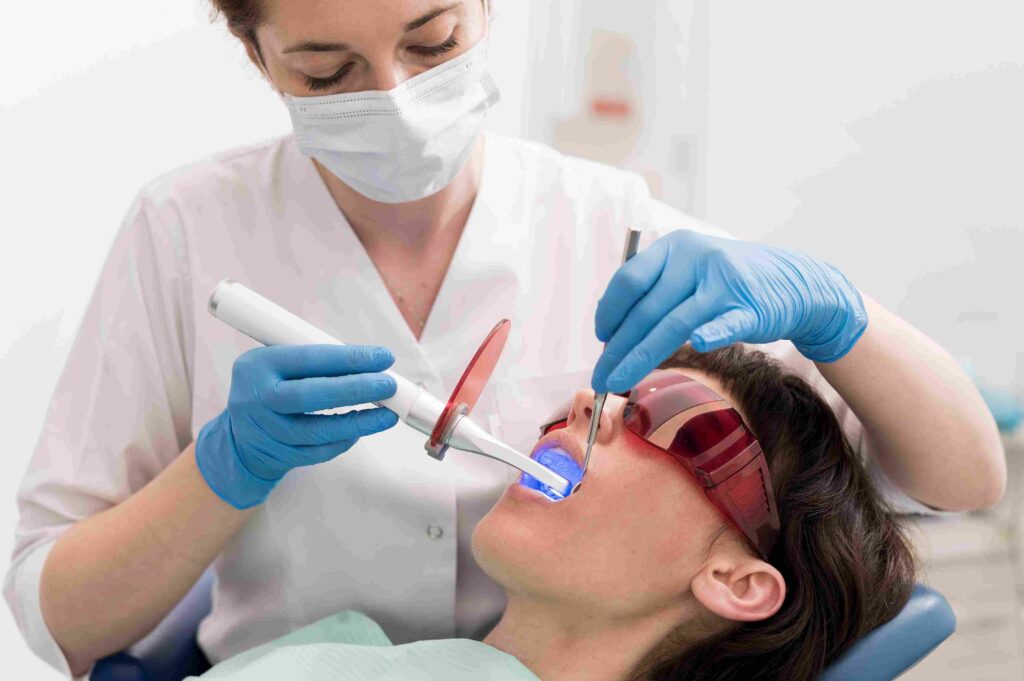 We’ll apply the composite resin in layers, hardening each layer with a special light. This ensures that the material bonds securely to your tooth and creates a strong, durable filling.
